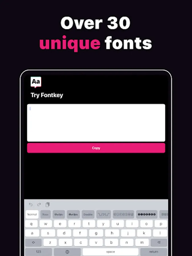 Fonts by Fontkey is an App and Keyboard that lets you use unique fonts to customise your social media profiles on Instagram, Snapchat, Tiktok, Roblox, Twitter, Tumblr, and more!