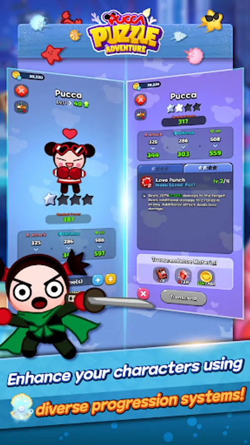 Enjoy Puzzle RPG gaming with Pucca and her friends!