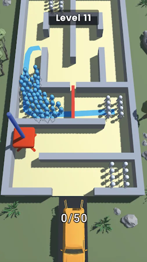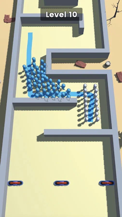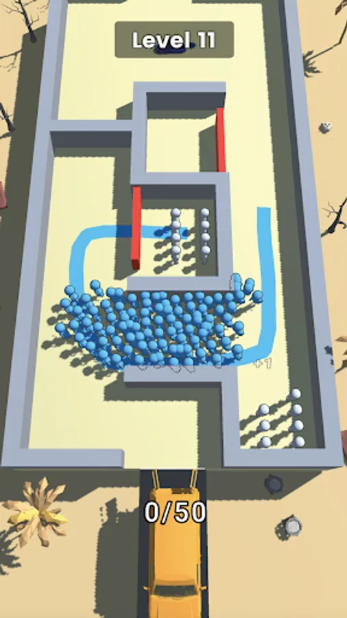 Draw a path to guide the crowd to safety through the maze. Increase the mob size by navigating through challenging traps and helping stranded crowds.