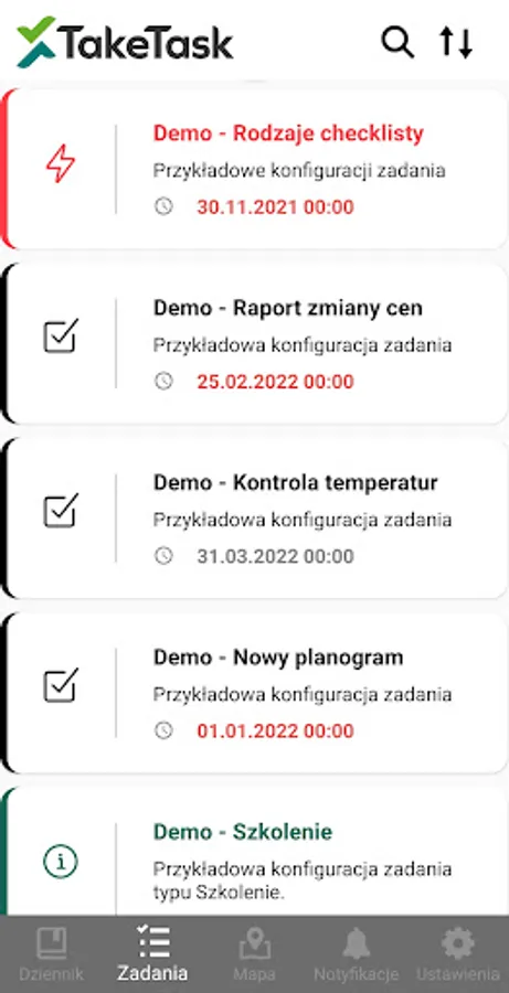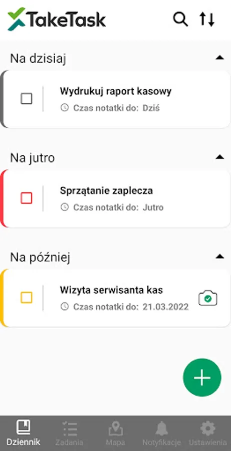 Application for task management in TakeTask shopping networks, allows ordering tasks from the headquarters directly to store employees via smartphones - eg introducing a new shelf planogram or a new promotion. Thanks to the application, the employee will receive detailed instructions on the task directly to his smartphone, and the control panel will be informed in real time, eg by sending a photo, audio or video recordings by the employee, etc. The application also has a built-in GPS sensor to verify whether during the task the employee was in the correct location.