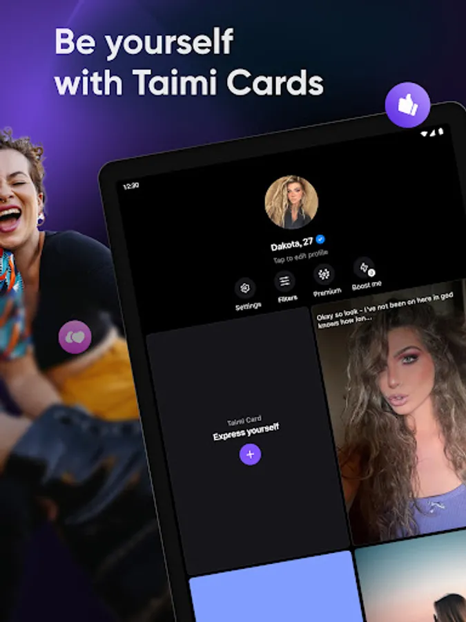 Use Taimi Cards to craft your own profile and to see others. These let you choose the content you share – photos, text posts & answers to prompt questions and to see the cards of potential mutuals. Use these cards to take an action – Skip a profile, give a simple Like, or a special Rainbow Like to show keen interest.