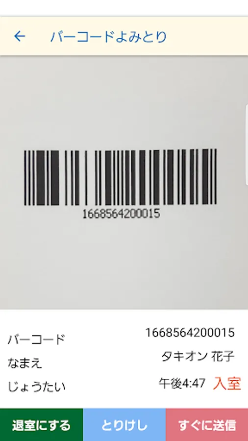 In this application, we read the student's barcode from the terminal's camera when entering or leaving, and send the information on entering / leaving to the service.