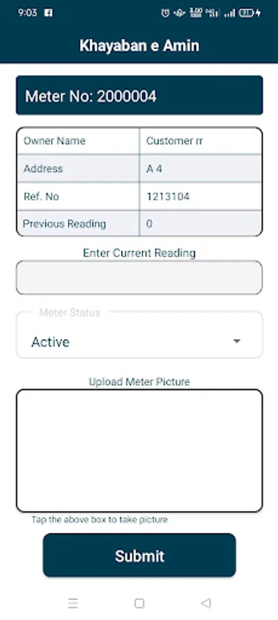 - User can enter the current reading of the meter and also take a picture of meter and store it