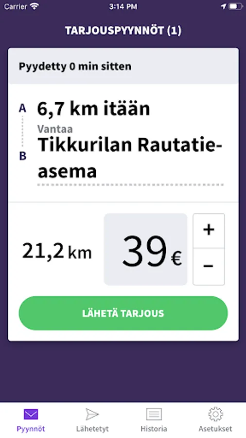 The application will provide a bid price for each call for proposals based on the base price you set earlier. You can also conveniently edit the price. The customer can get several offers from drivers using Taksar, from which he chooses the one he likes.