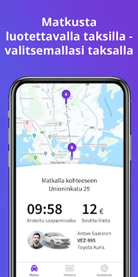 All Taksar taxis and drivers have the permits required by law and supervised by Traficom. Driver ratings provided by customers support the realization of safe rides.