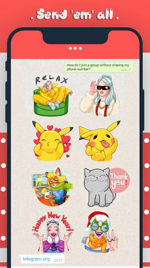 The Telegram stickers in this app are published with permission from Telegram, obtained at stickers@telegram.org