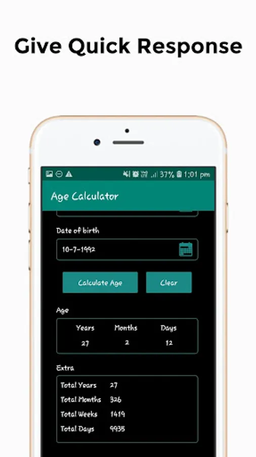 The extra feature’s in this app you get Total age in Years, Months, Weeks, Days, Hours, Minutes, and even Seconds.