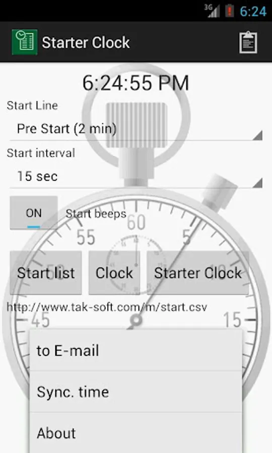 Starter Clock is application for sport event organisers. 3 different views - digital, starter list and clock with competitors list (possible to download start list in SIME cvs format and send back checked list by e-mail). Start interval and start line is configurable. 5 pre-warning "beeps" before start.