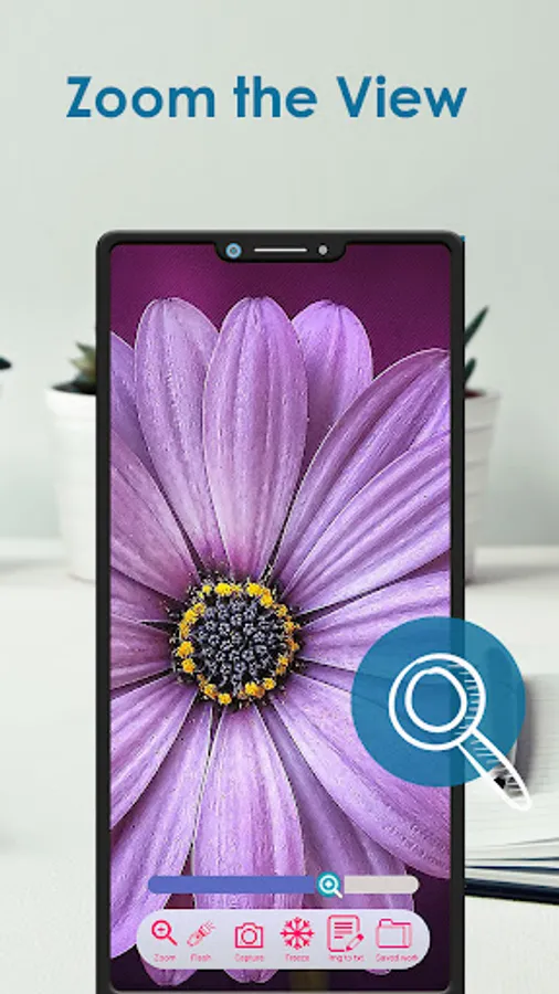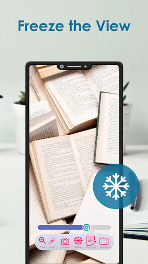 Magnifying glass app with OCR scanner and flash light