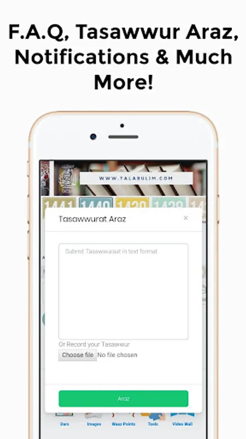 7) F.A.Q and Ask questions: You will be able view frequently asked questions and ask questions regarding mawaiz nooraniyyah through this app.