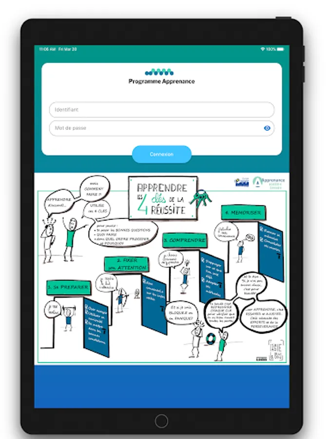 The Apprenance application is a methodological tool to support student learning. It is designed by the team of the apprenticeship training program of the rectorate of the Grenoble Academy and co-financed by the European Social Fund. It is a support for mediation and support between students and teachers, its use is designed in the theoretical frameworks of the apprenticeship training program.