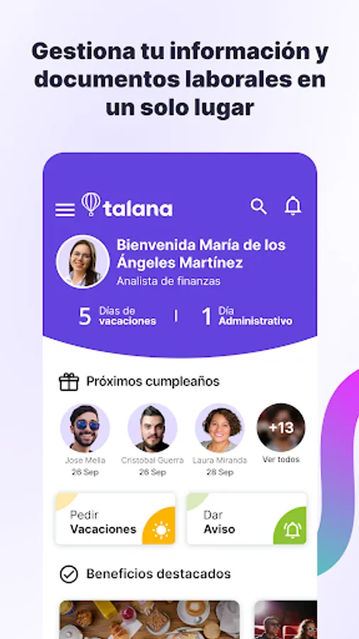 Ask for your vacations, overtime and permits. In addition, you can send communications and publish news directly reaching all your colleagues, learn about the benefits that the company has for you and participate in your company's decisions through pulse surveys.