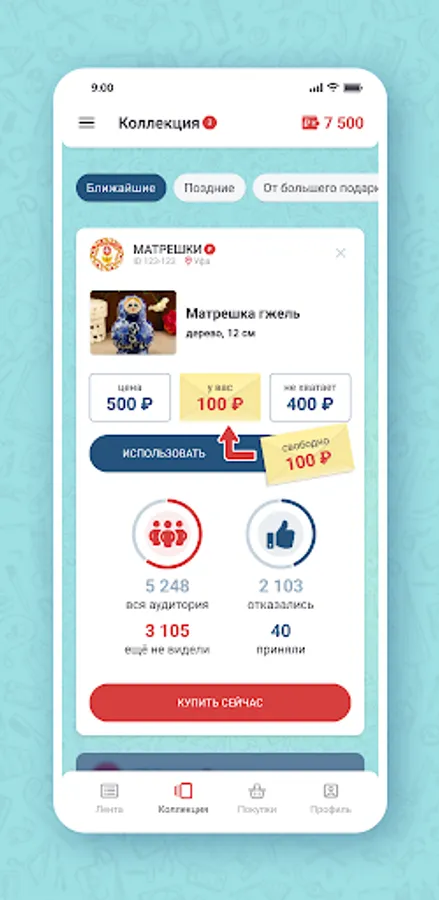 Each sentence in your Feed contains an "envelope" containing a sum of money. She is meant for you. With it, you can immediately partially pay for what the offer says.