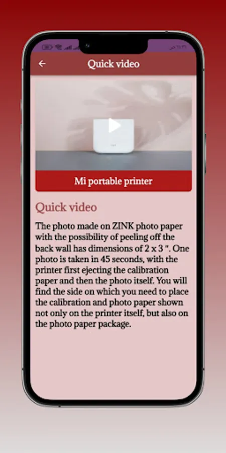 An app Mi portable printer that gives you information about Mi portable printer
