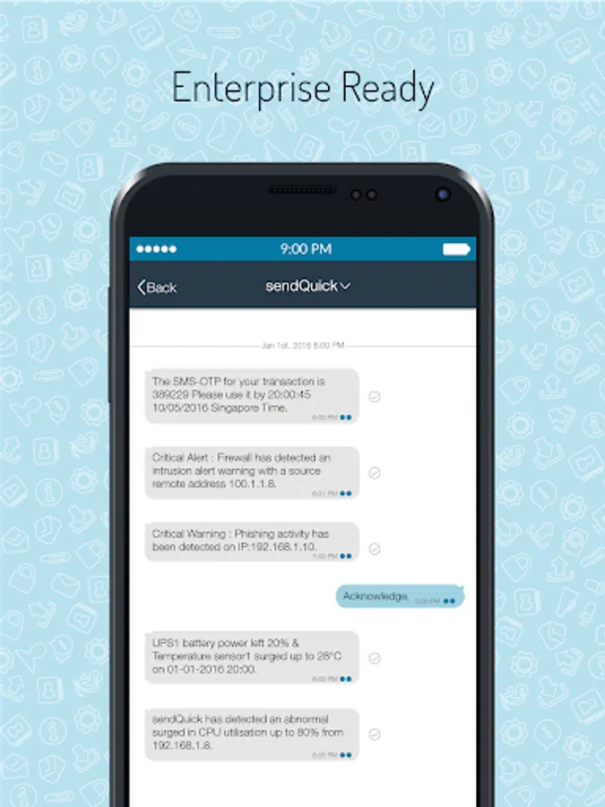 sqoope™ is the Enterprise class mobile messaging application developed by TalariaX Pte Ltd. sqoope™ facilitates on a natural and novel way in communicating within a corporate landscape. User authentication is verified and given access directly via AD, LDAP, Radius and DB. Bundled with exciting features while taking stock that nothing compromises on the level of confidentiality required in data exchange on the Enterprise level. sqoope™ is capable of integrating with sendQuick® servers in providing multi-channel messaging solutions for the Enterprise through mobile messaging. sqoope™ is the only mobile application available in this industry that is interoperable with the API (Application Programming Interface) of sendQuick® servers in facilitating the delivery of both SMS (Text) and instant mobile messages to other applications.