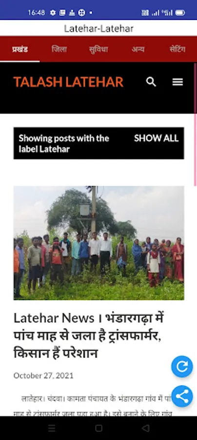 This app is developed by Sunil Kumar, Editor of Talash News Jharkhand. This is an app for news of all district of Jharkhand. We serve block-wise news after setting. We provide news of Garhwa , Palamu , Latehar , Bokaro ,Chatra , Deoghar , Dhanbad , Dumka , Giridih , Godda , Gumla , Hazaribag , Jamtara , Khunti , Koderma , Lohardaga , Pakur , East Singhbhum , West Singhbhum , Ramgarh , Ranchi , Sahibganj , Seraikela Kharsawan , Simdega districts. We give plitical news, sports news, breaking news etc.