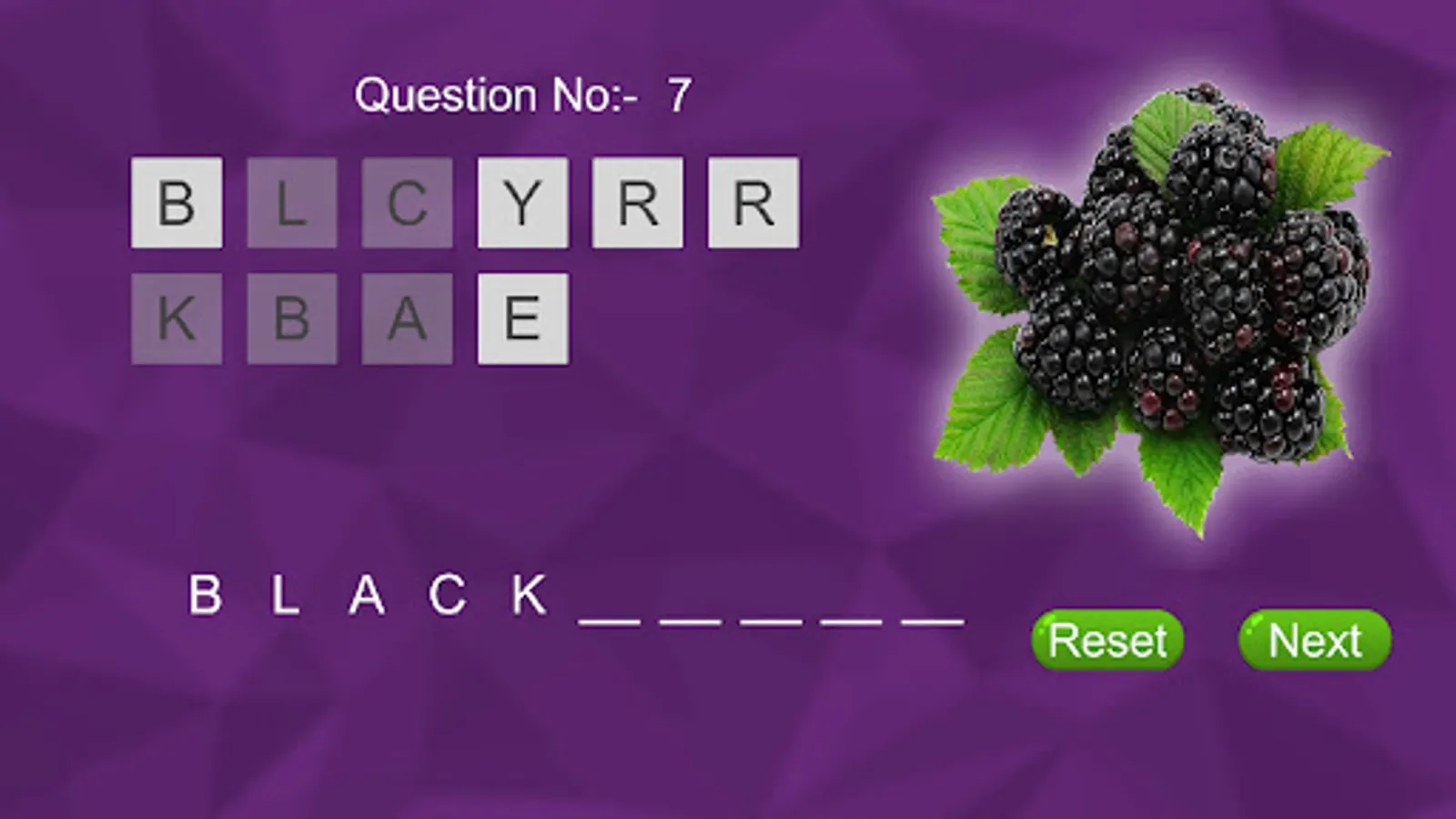 One picture is display, identify the picture and guess the word of that picture(object). Alphadet are given in unmanner position.create the correct word from alphabet.