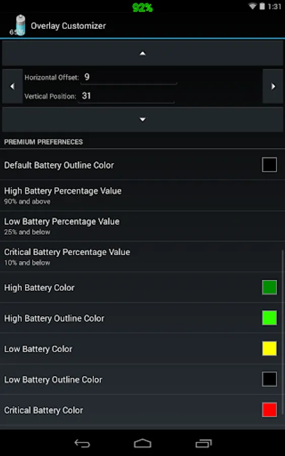 By supporting Battery Overlay Percent you get additional features to this already unique application.