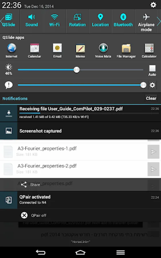 QPair is a software solution by LG that allows 2 devices (Tablet & Phone) transfer basic data between each-other.