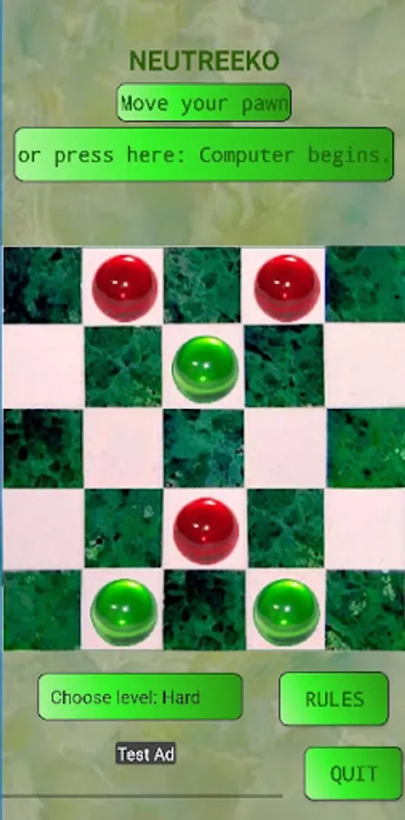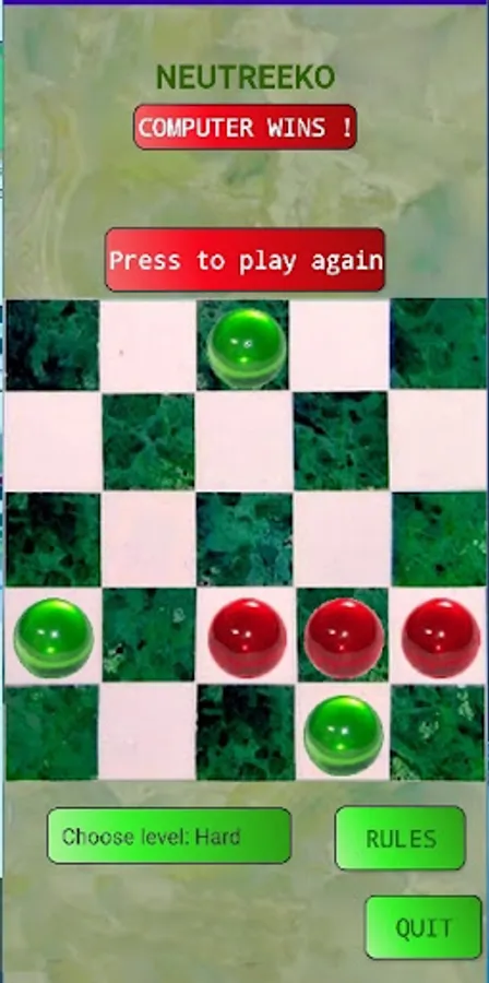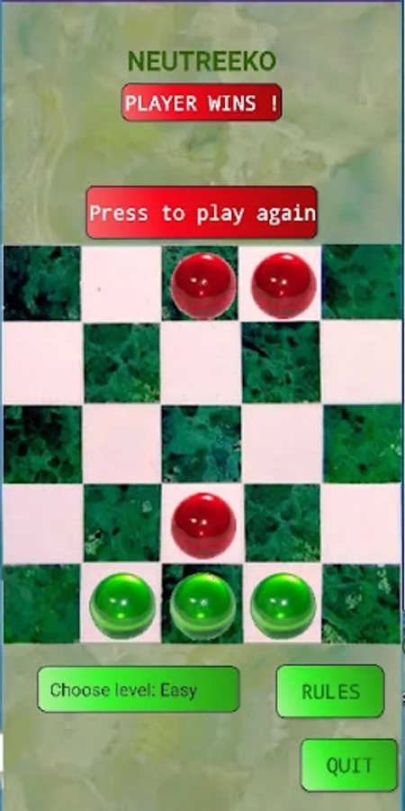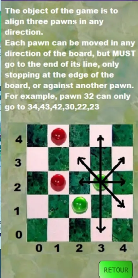 You just have to line up three pawns, but with a movement rule that revolutionizes the game ! Each pawn can go in any direction. But it MUST go to the end of its line, to the edge or another pawn. You can win on the easy level. But it will be hard after...