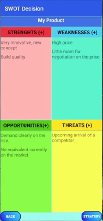 - WEAKNESSES: knowledge to be updated, shyness, high price of the product, ...