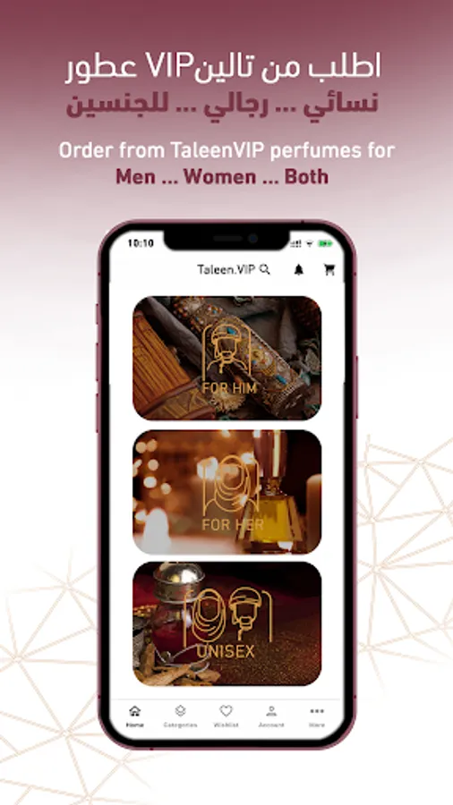 تالين VIPالتطبيق الرائد لتسوق العطور اون لاين في السلطنة والخليج، يقدم أحدث العطور العالمية والمحلية، الفرنسية الأصلية والمضمونة لأغلب الماركات المعروفة وأكثر.