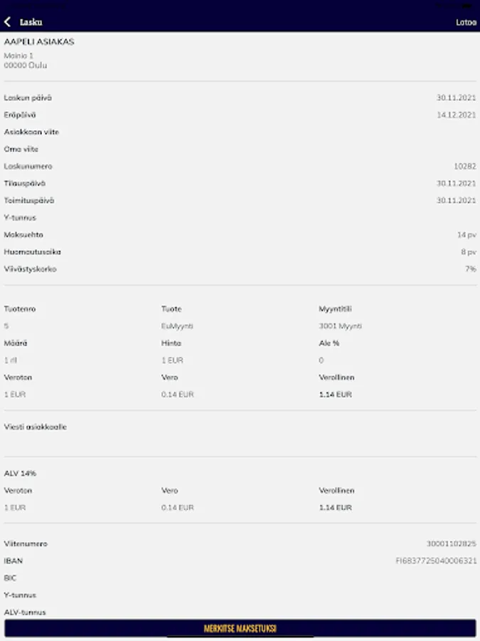 With the mobile app you can download receipts and send sales invoices! Other features are available on the tilijaska.fi website.