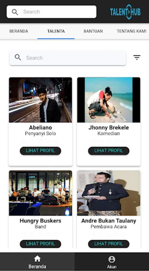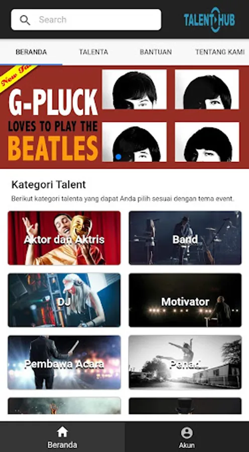 Talent-Hub is an application for booking professional talents and artists from all over Indonesia ranging from singers, bands, MCs, DJs, to comedians for various types of events such as weddings, product launches, birthdays, company gatherings, reunions, government events, events religious, and so on.