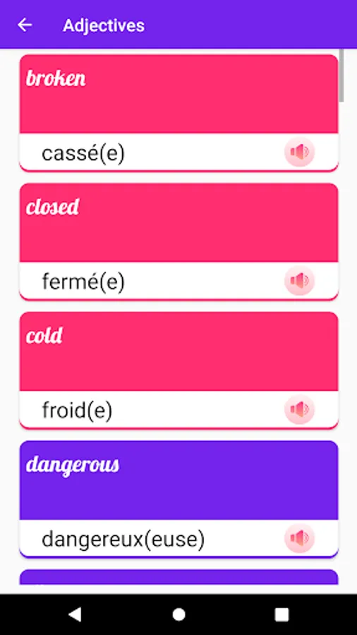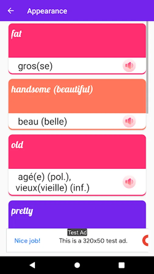 French is a top international language and is spoken in many countries. People speak French in the world as their second language in many countries and the same is in European countries. This app is built in mind of our local taste. We have made this app for you to learn the fast French. Just install this app & start learning.