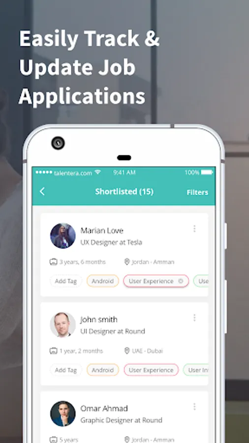 Now we brought your career portal to the palm of your hand! Search and filter through candidates anytime, anywhere! Manage and view your job postings on the go, as well as updating and tracking applications, the ability to manage candidates with folders, and much more features to come!