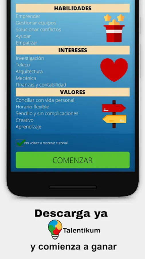 Companies no longer look for their candidates only because of the title they hold but because of their skills, interests and professional values. Discover yours with the help of Talentikum, but in a funny way and participating in great contests !