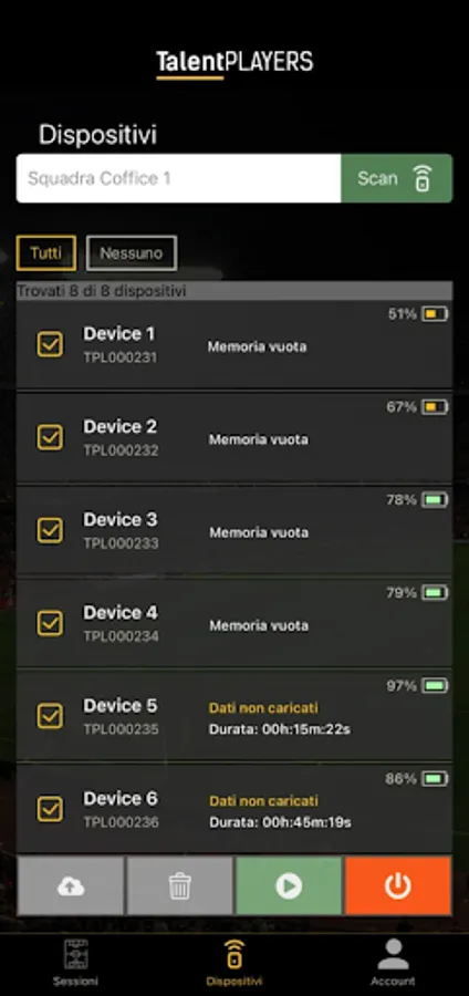 Through the TalentPLAYERS app it will be possible to download data from the devices used by the entire team in a few seconds. Subsequently, the data can be processed and viewed through our online platform.