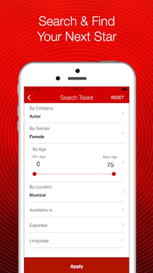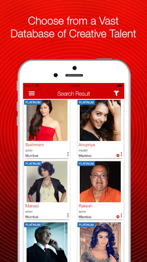 - Recruiters can search artists from 14+ categories (actors, models, singers, musicians, dancers, photographers etc.) using various filtering parameters.
