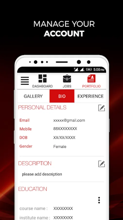 - Create a stunning portfolio with multiple photos, videos, audio and bio