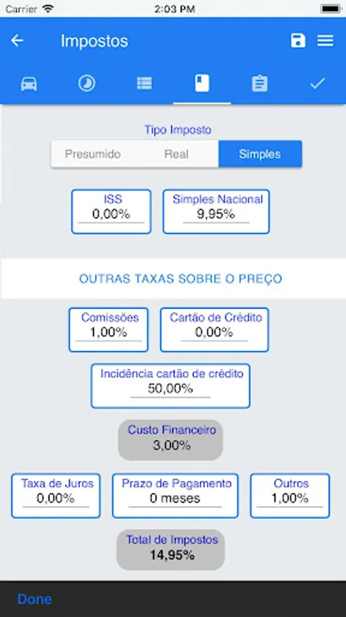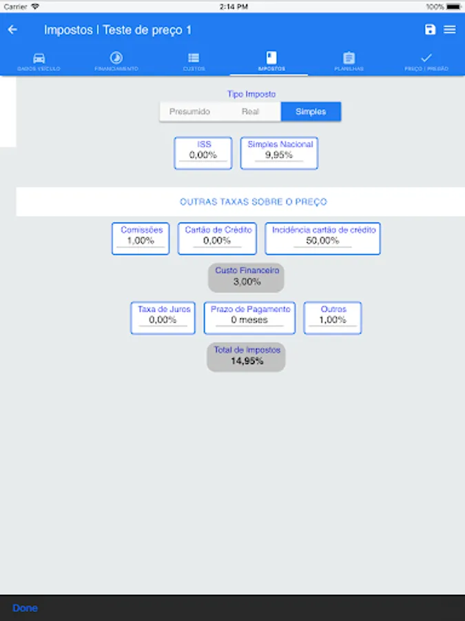 The App also considers taxes generated by leasing operation in the three modes available: Simple presumed income and taxable income.