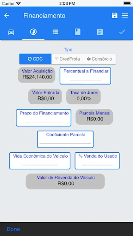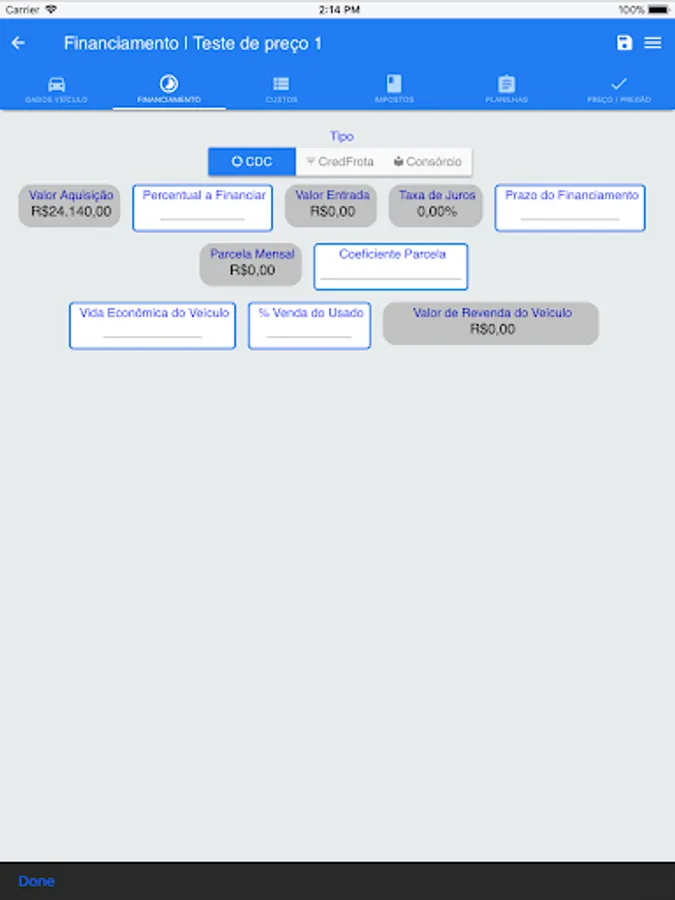 The Fair Price ABLA 2.0 allows the user to simulate various alternatives pair get the lowest price to the customer with the best return for the car rental agency. You can calculate the price by buying the vehicle in sight and switch to buying funded by CDC, CREDIFROTA or through a consortium.