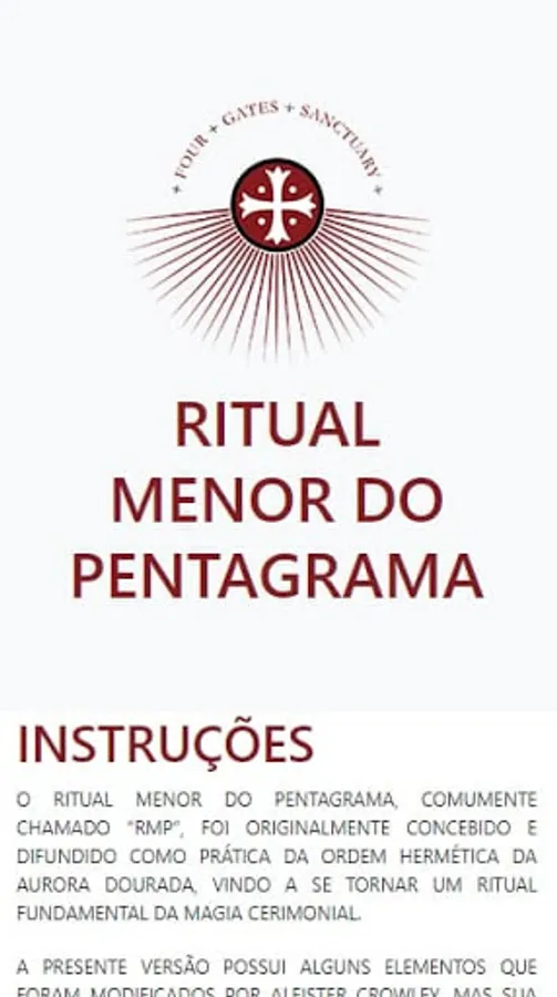The Lesser Ritual of the Pentagram, commonly called "RmP", was originally conceived and disseminated as a practice of the Hermetic Order of the Golden Dawn, becoming a fundamental ritual of ceremonial magic. This app was developed to help those who are starting in its execution.
