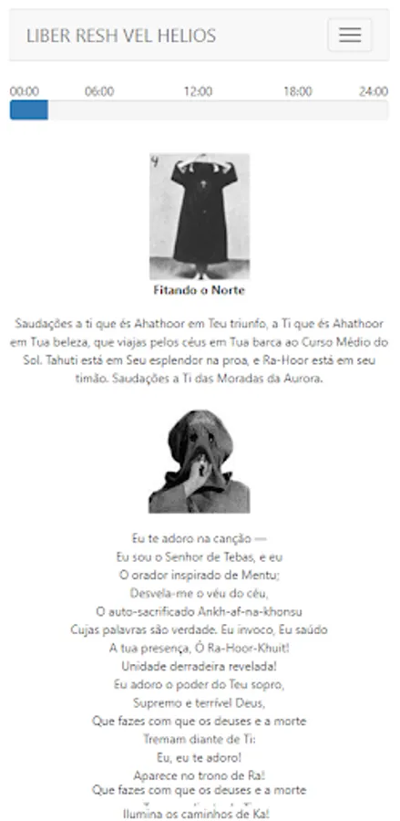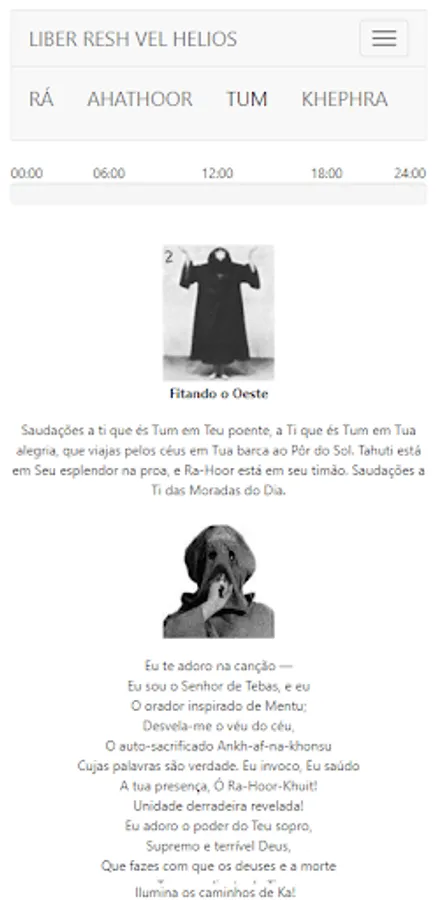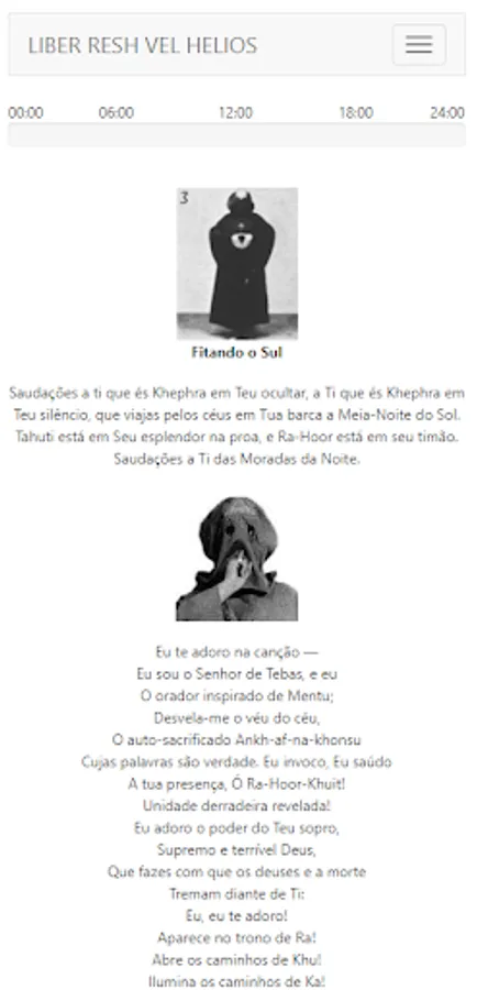 This application will assist you in the daily execution of Liber Resh vel Helios, indicating the correct worship for a certain time of the day, signs and passages.