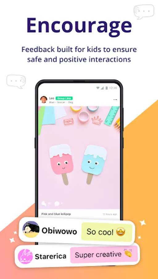 We believe kids thrive on supportive feedback from peers and family. By interacting with other kids through a list of supportive comments, kids will learn to provide others with attention and compliments. This will provide kids with a great opportunity to learn internet social ethics.