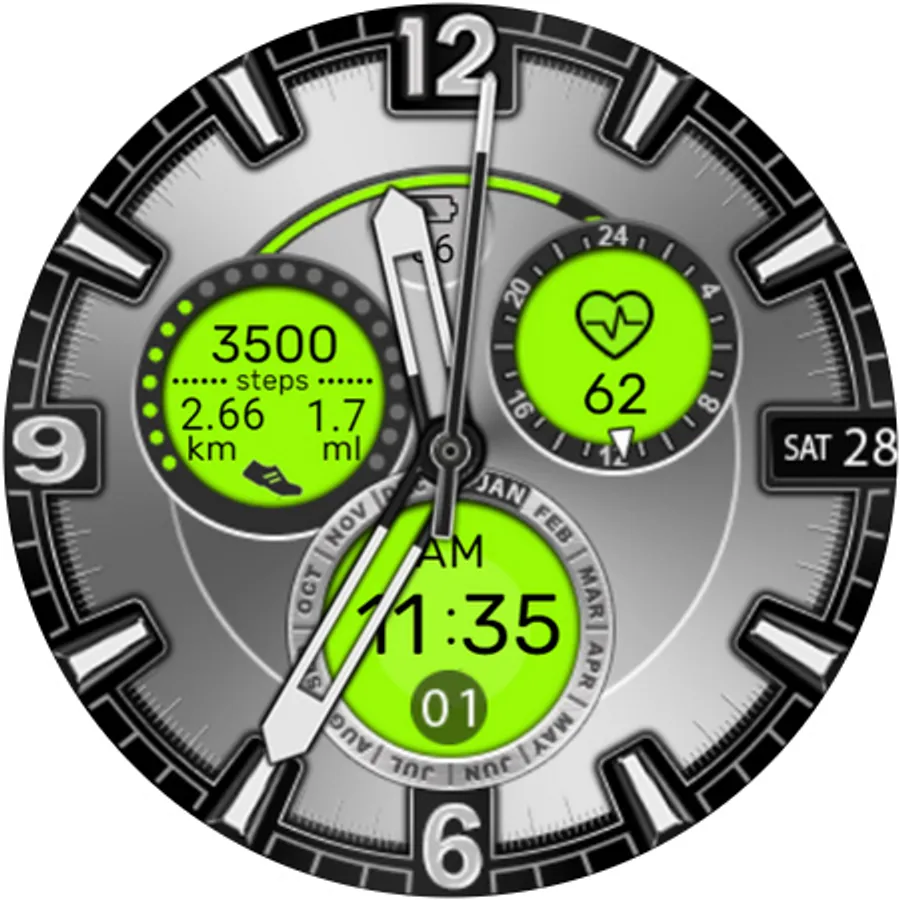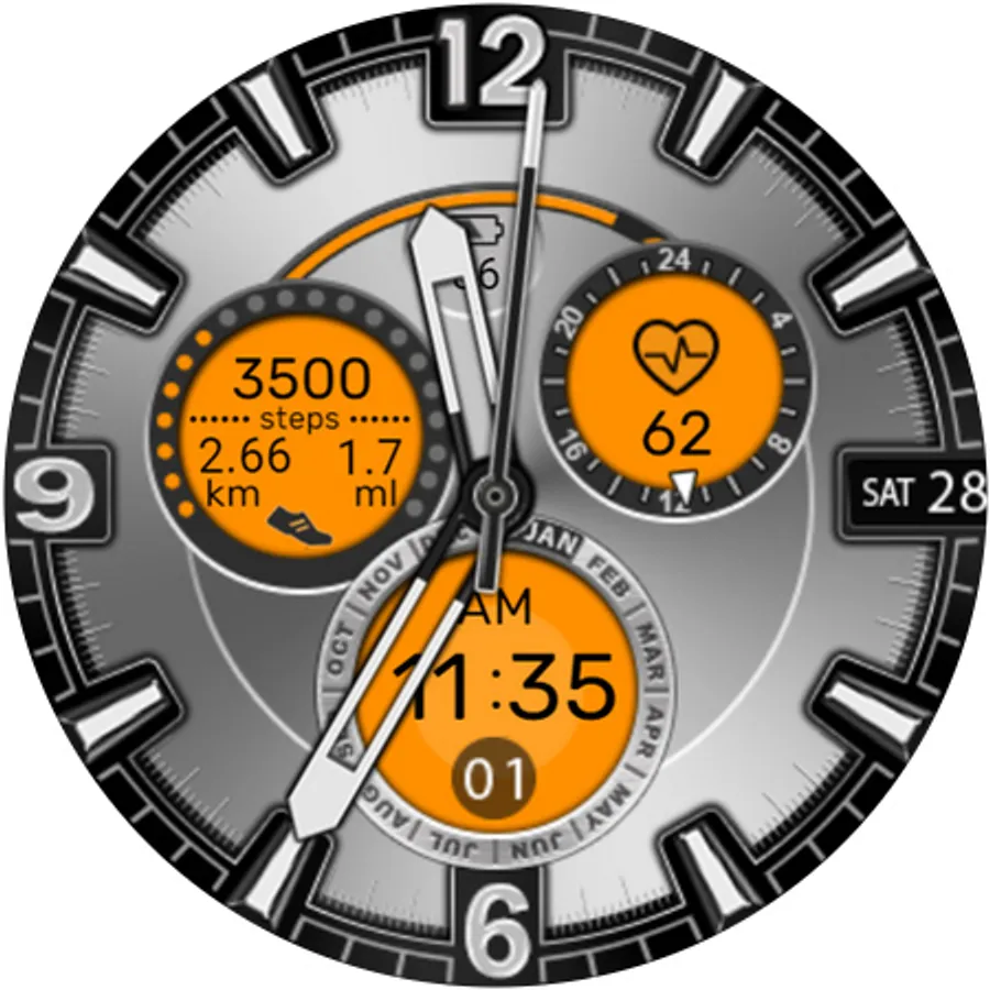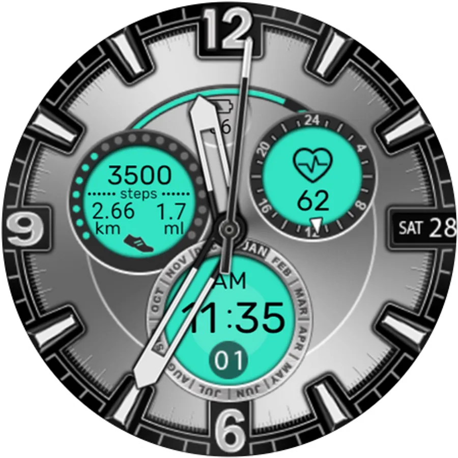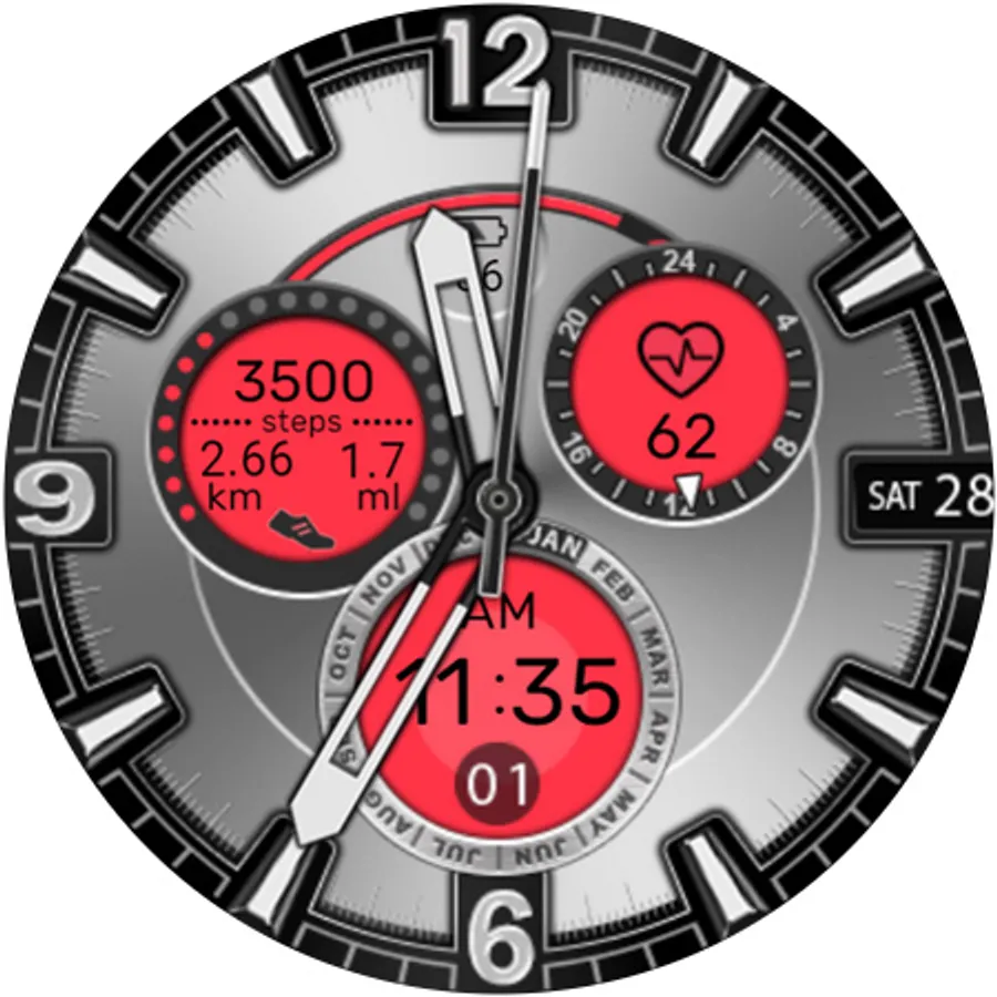 *Heart rate measurement is independent from the Wear OS heart rate application and is taken by the watch face itself. The watch face shows your heart rate at the time of measurement and does not update the Wear OS heart rate app. The heart rate measurement will be different than the measurement taken by stock Wear OS app. The Wear OS app will not update the watch face heart rate, so in order to display your most current heart rate on the watch face, tap the heart icon to measure again.