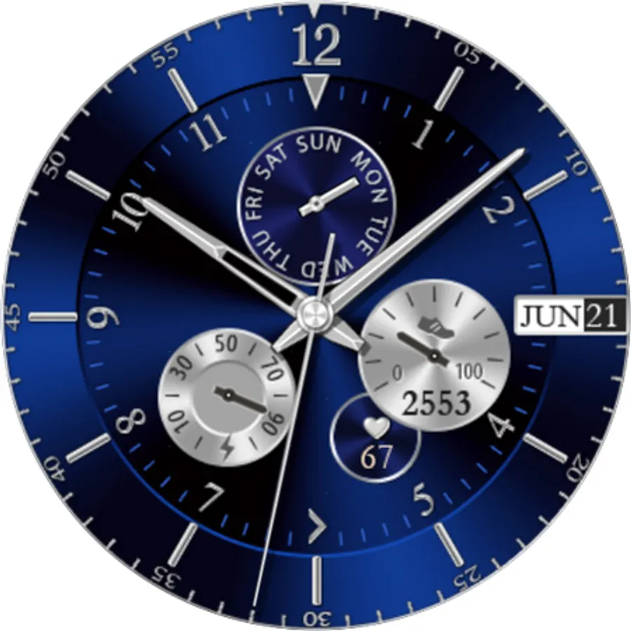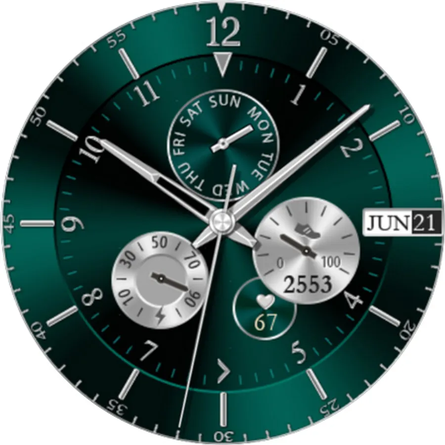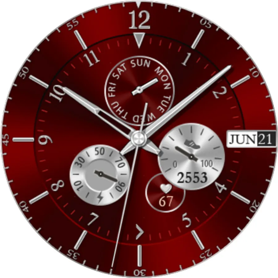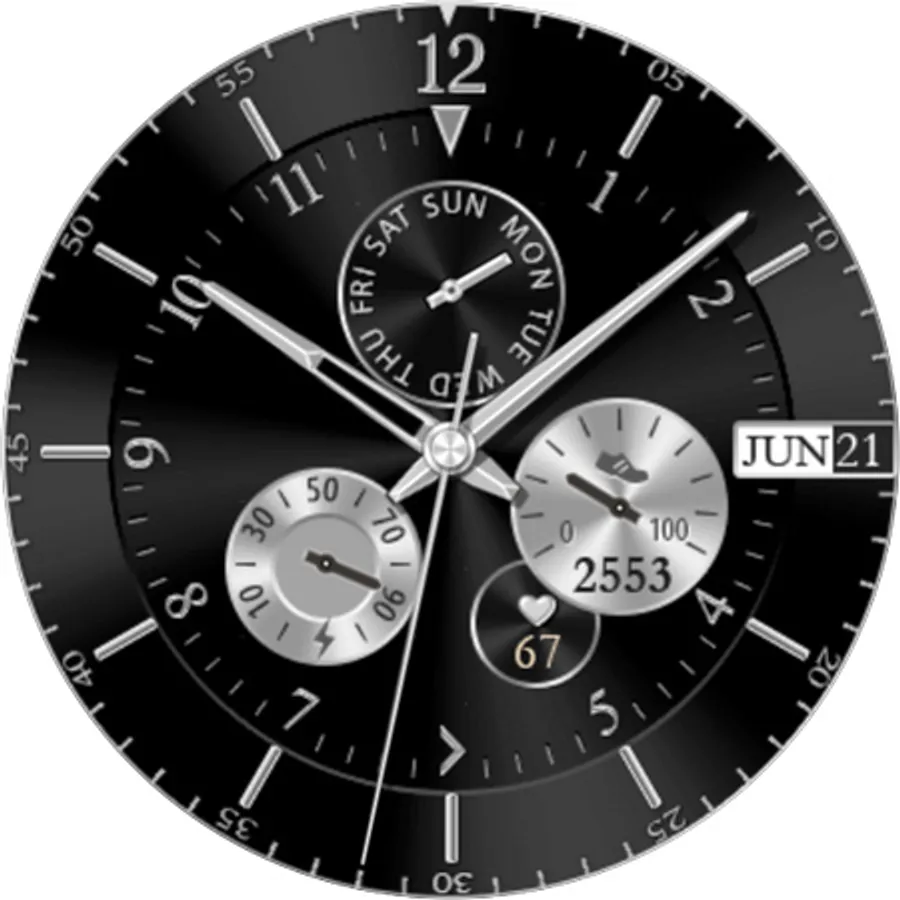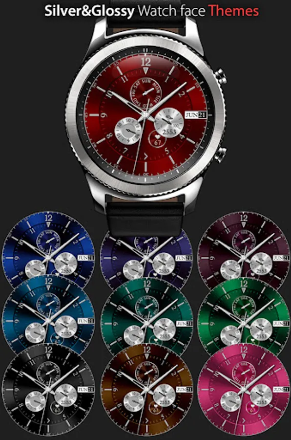 Silver Glossy Watch - bright and beautiful interactive watch face with 10 great Color Themes.