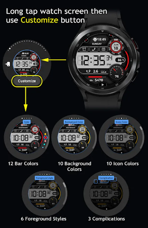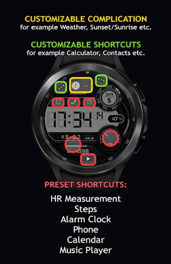- 1 Customizable Complication (for example Weather, Sunset/Sunrise etc.)
