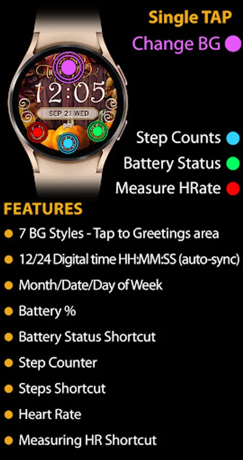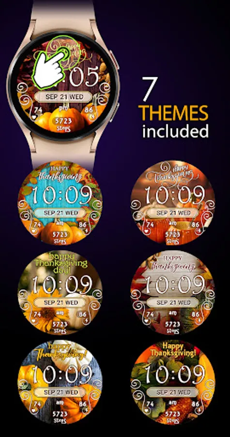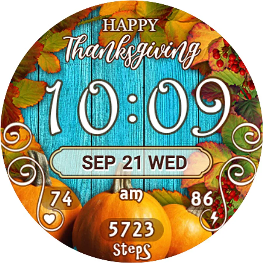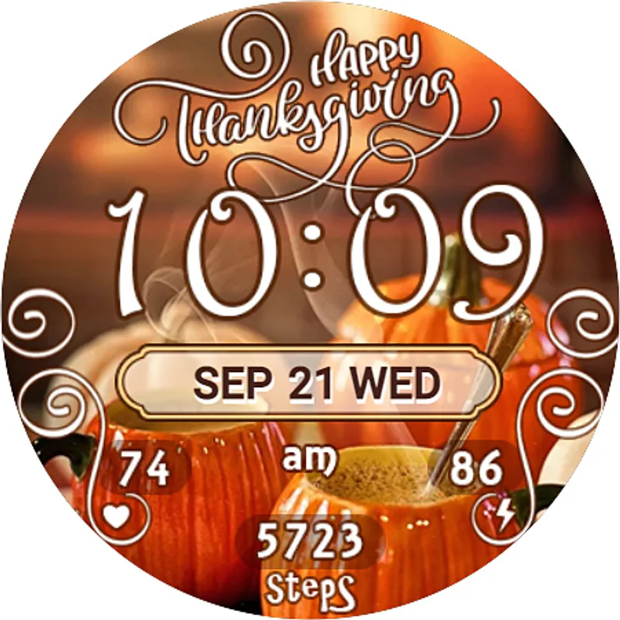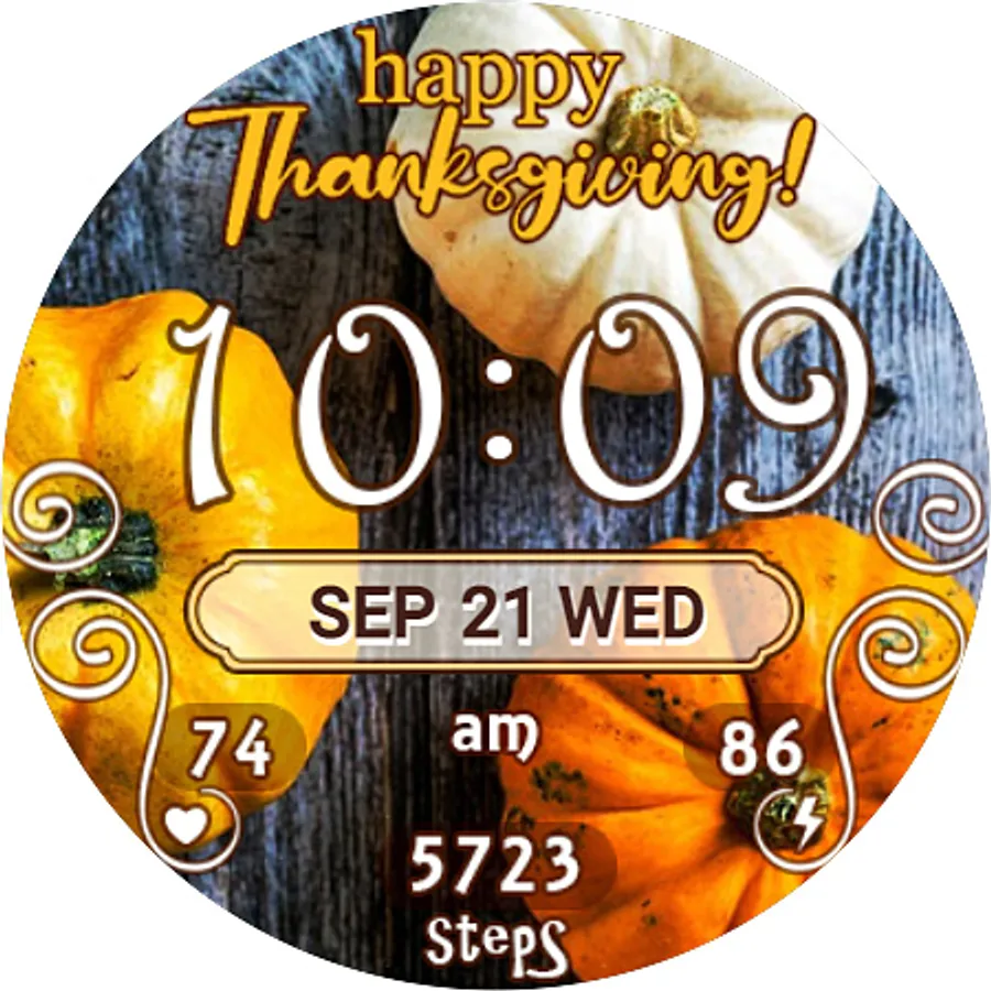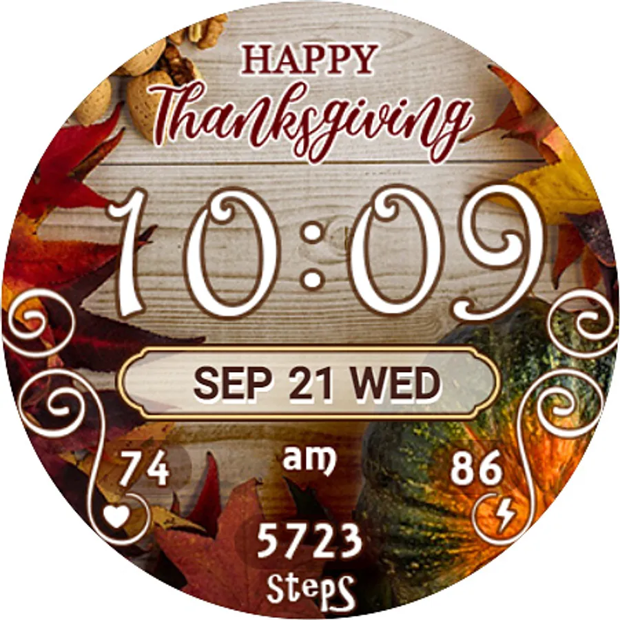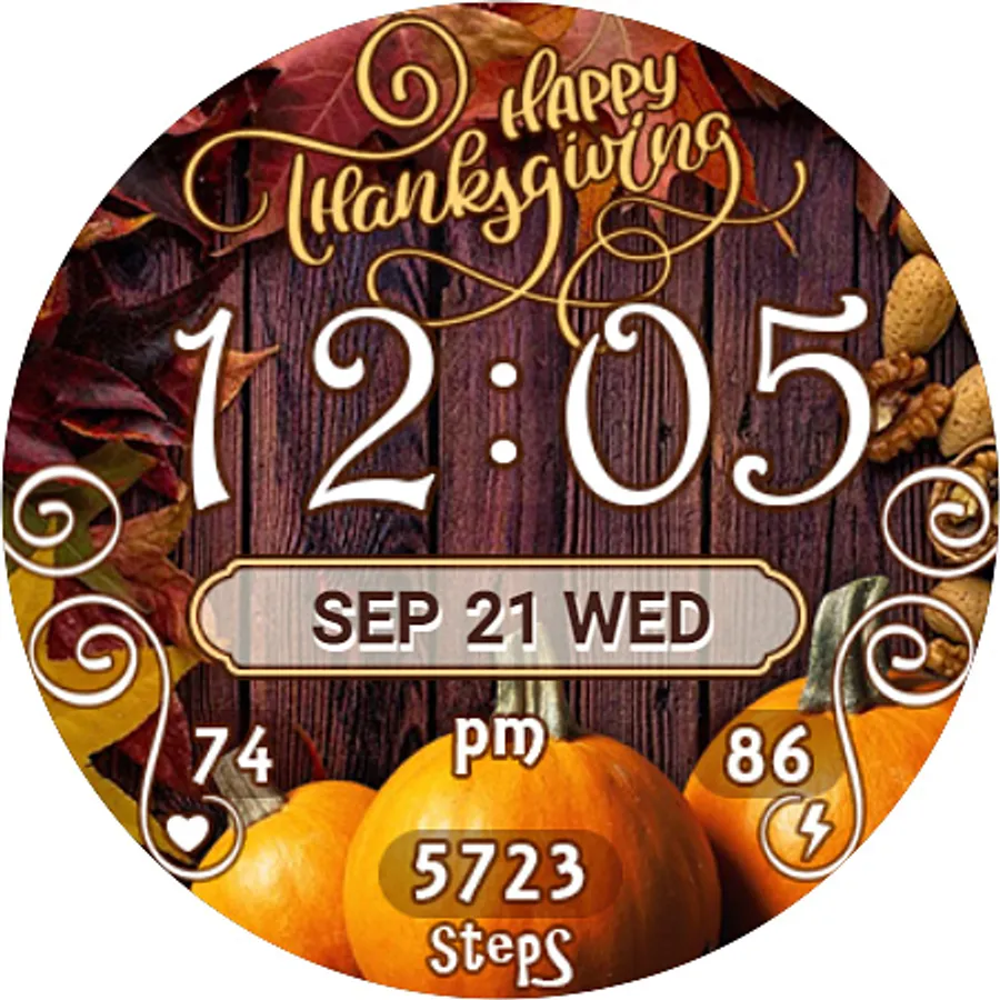 Watch face for Wear OS especially designed for Thanksgiving Day.