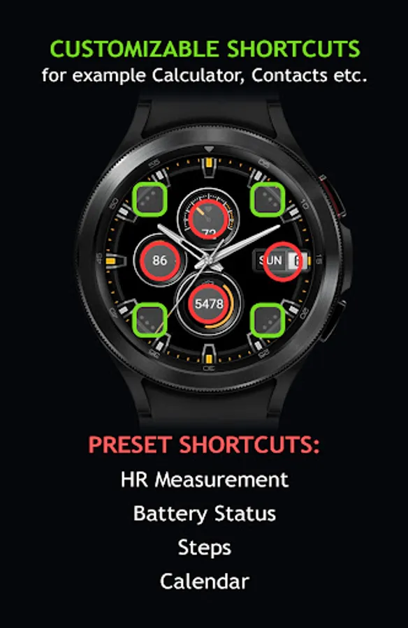 - 4 Customizable shortcuts (for example Calculator, Contacts etc.)