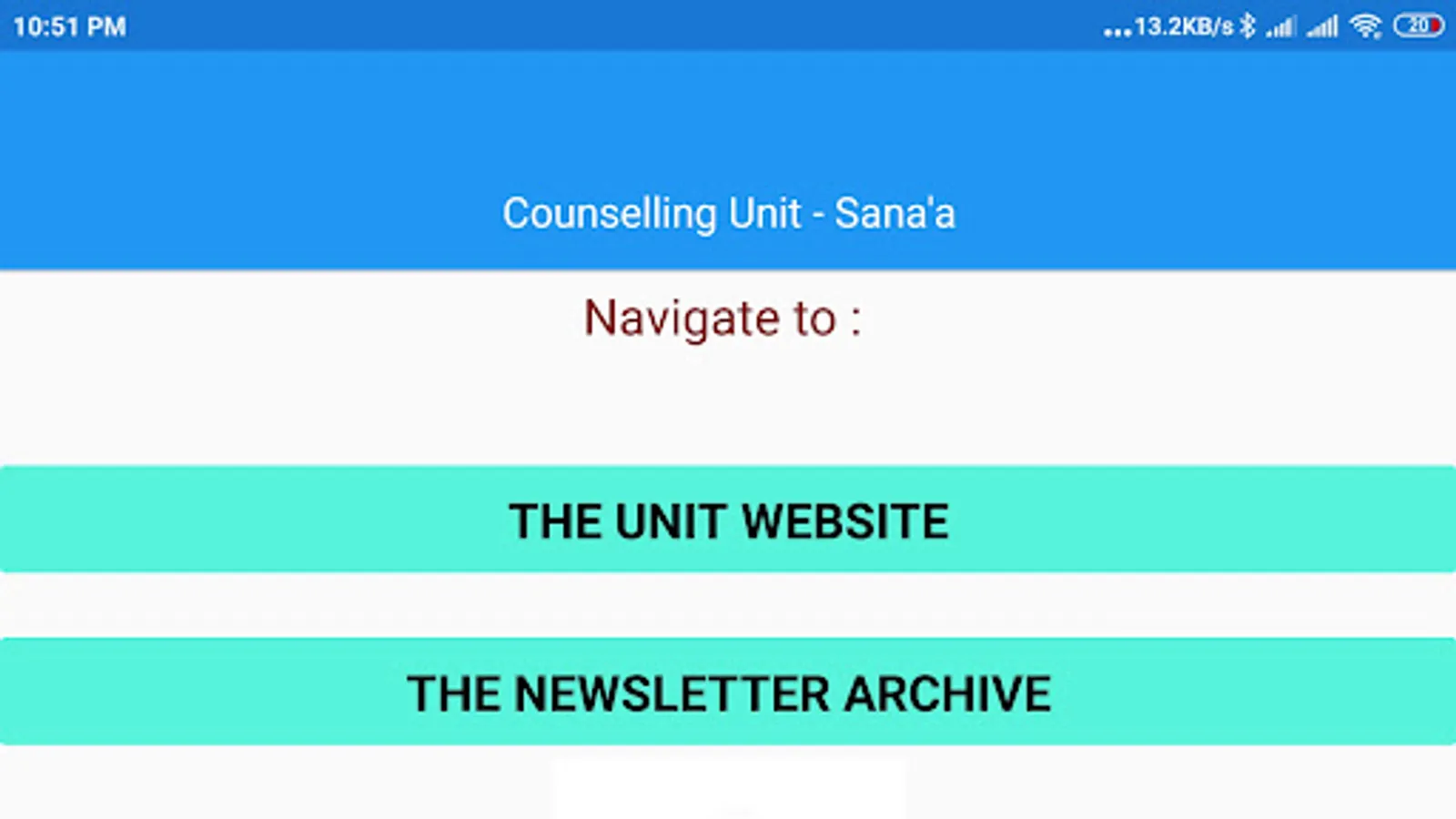 This App is for the website of CISMU counseling unit in Yemen : counselingye.com. It also gives the archive of the unit periodic newsletter issues