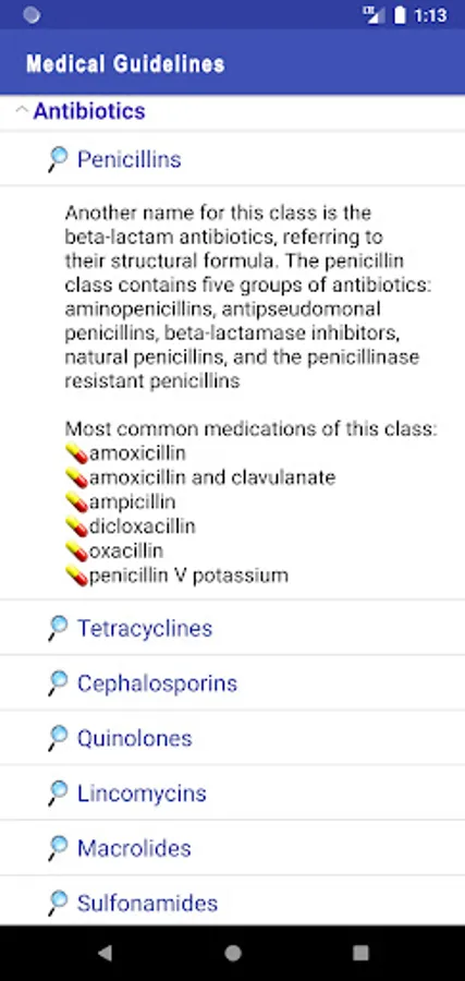 Antibiotics: memorize all antibiotics and look them up with ease. The app explains the mechanisms of action, indications, the medications themselves and the side effects.