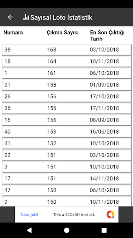 You can reach statistical results for Numerical Lotto, Chance Ball, Number Ten and Super Lotto and you can see how many times each number goes in order.