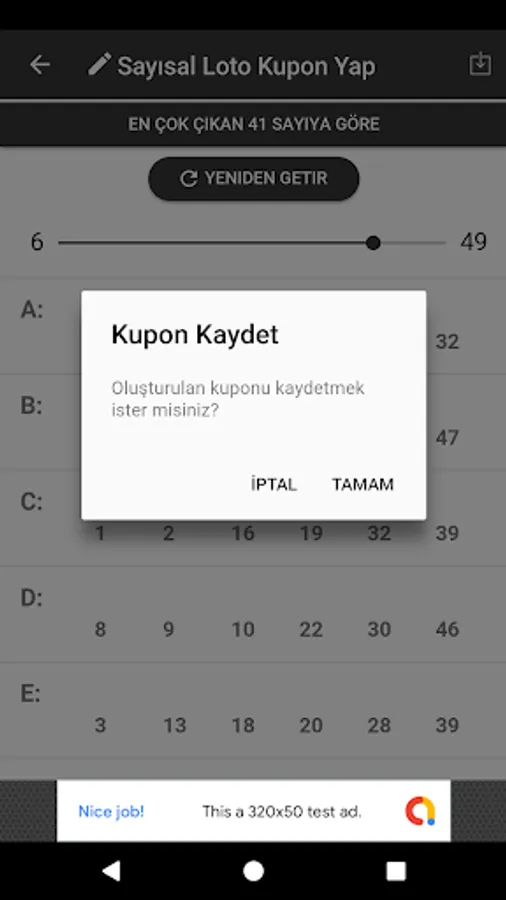 Numerical Lotto, Luck Ball, Number Ten and Super Lotto you can make coupons according to the most number of coupons. You can learn the result of the coupon that was made when the draw for the game of chance is recorded.
