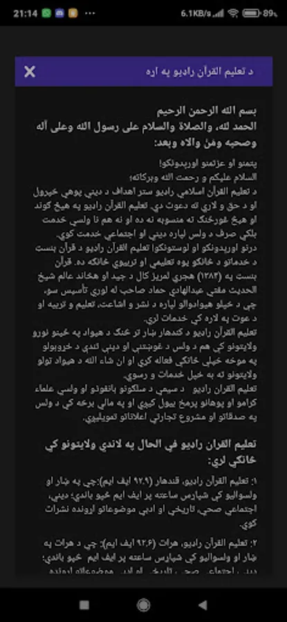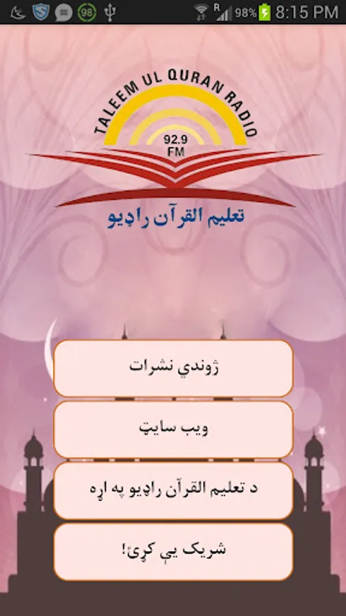 ۵: تعلیم القرآن راډیو اپلکیشن (Taleemul Quran Radio): په زیرک ټلیفون کي د دغه اپلکیشن په ډانلوډېدو سره څلرویشت ساعته په ټوله نړۍ د تعلیم القرآن راډیو اسلامي، اجتماعي او ادبي موضوعاتو نشرات اورېدل کېدای سي.
