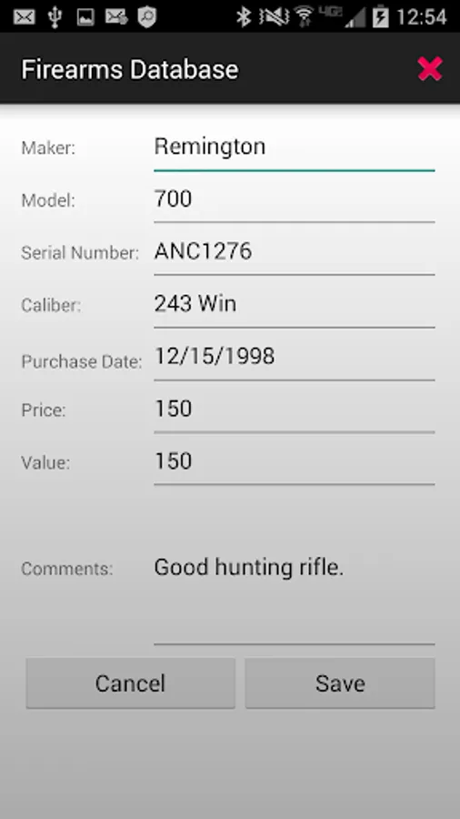 Sportsmen, hunters, and shooters of all kinds need to be able to keep track of their firearms and ammo. This is the app to do just that! Keep track of information on your firearms including their make, model, serial number, caliber, purchase date, price, value, and any comments. Enter your inventory of ammunition so that you know what to buy next time you are at your favorite sporting goods store.